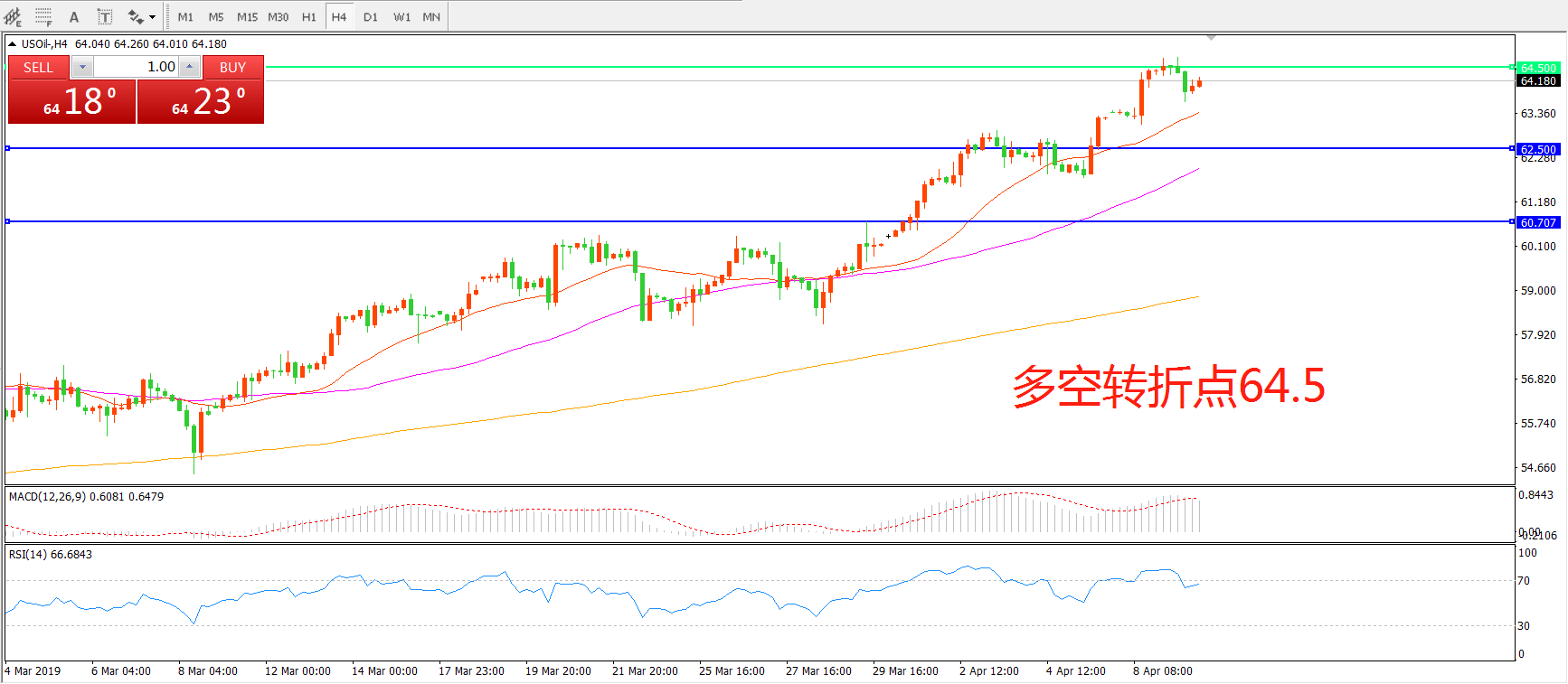 交易策略:在64.50之上看涨,目标66.50   70.00
