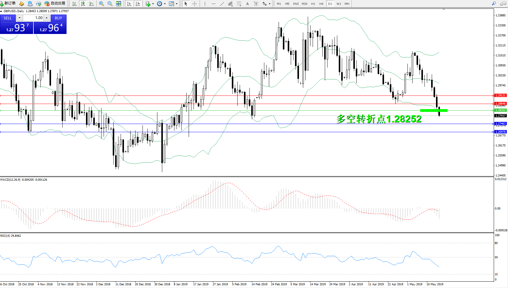 交易策略:1.28252下方看跌,目标1.27463、1.26978