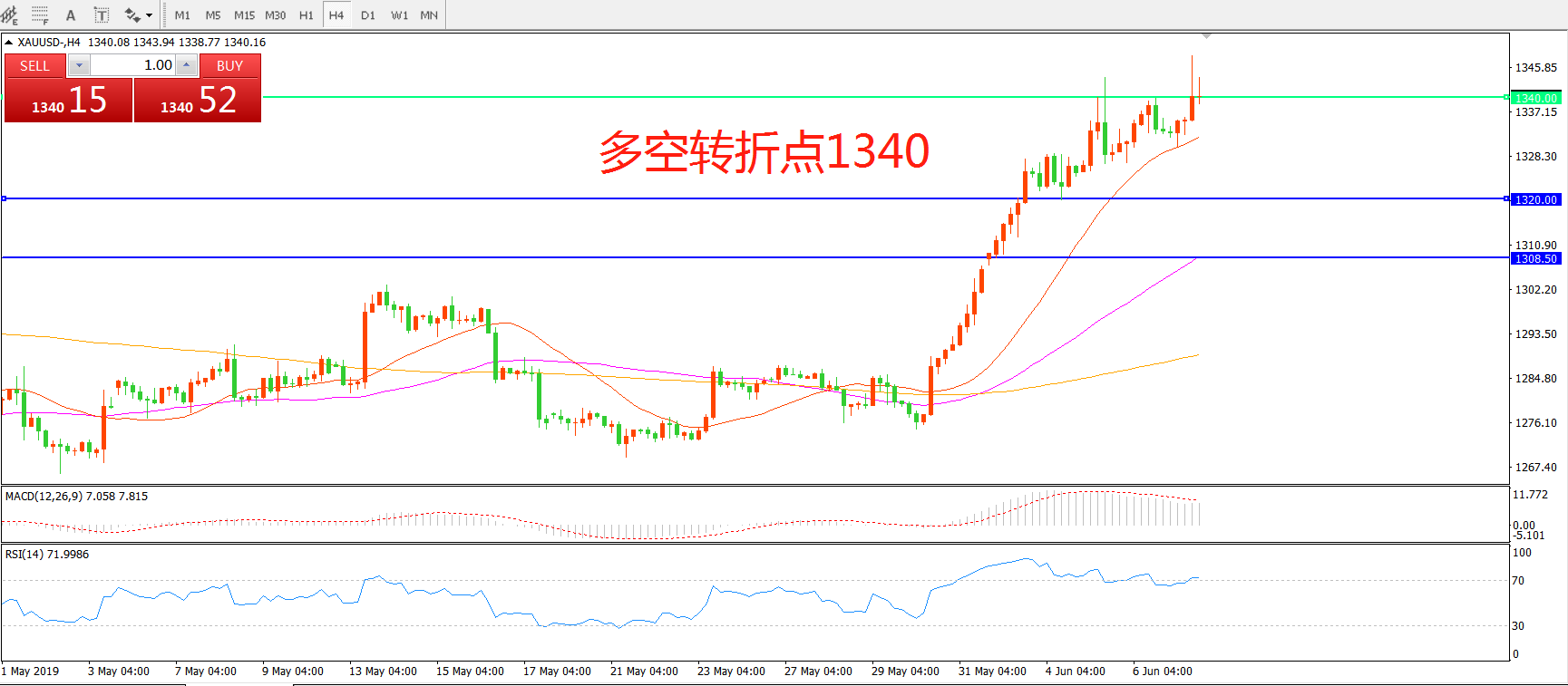 交易策略:在1340.00之上看涨,目标1354.00   1373.00