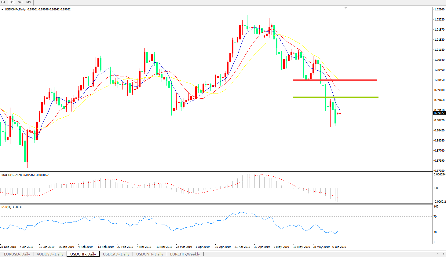 美元兑瑞郎USDCHF   日线图:
