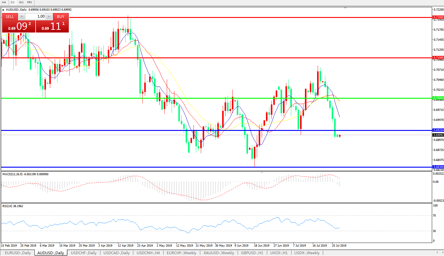 澳元兑美元AUDUSD 日线图