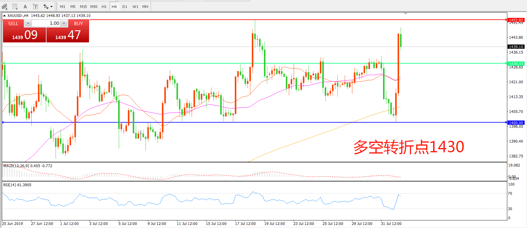 多空转折点:1430.00