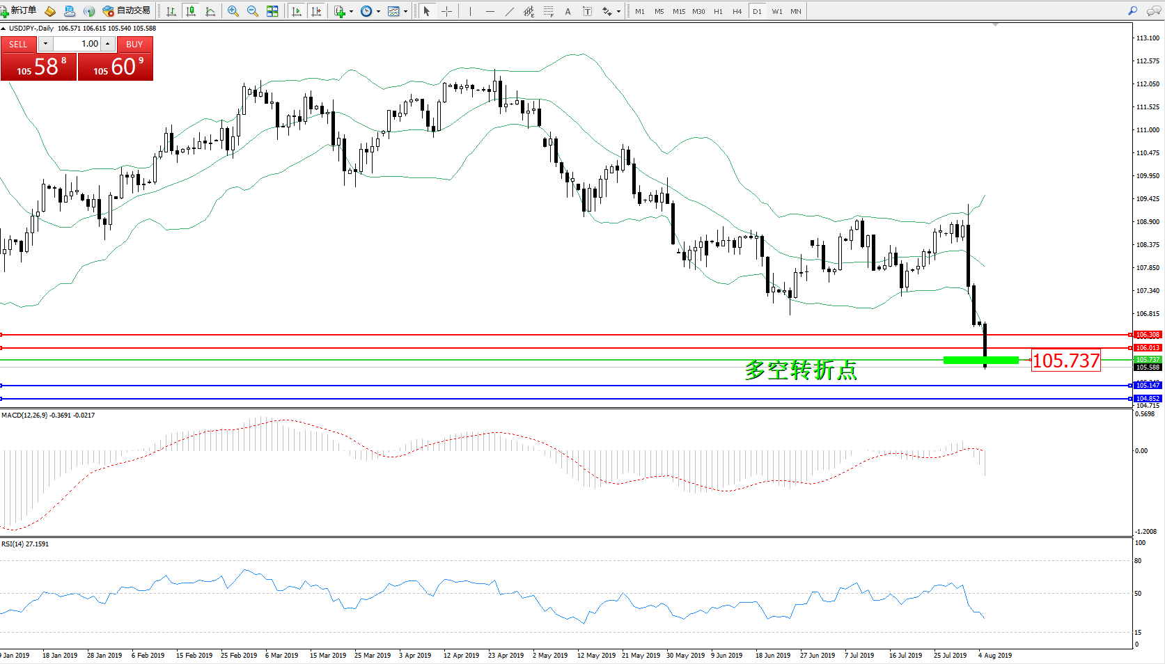 多空转折点:105.737