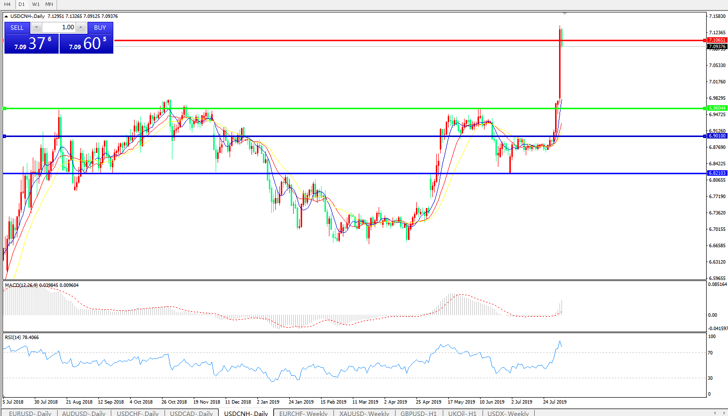 美元兑人民币USDCNH   日线图: