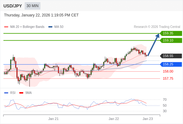 在 158.25 之上,看涨,目标价位为 159.10 ,然后为 159.35 。
