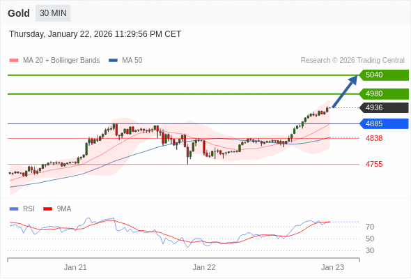 在 4885 之上,看涨,目标价位为 4980 ,然后为 5040 。