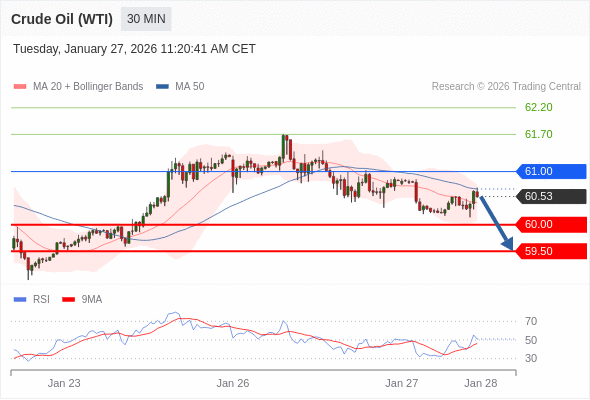 交易策略: 在 61.00 之下,看跌,目标价位为 60.00 ,然后为 59.50 。