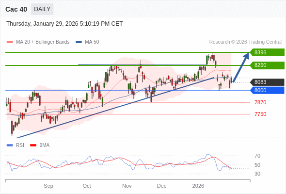 在 8000 之上,看涨,目标价位为 8260 ,然后为 8396 。