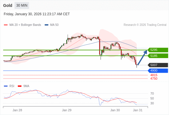 交易策略: 在 4900 之上,看涨,目标价位为 5185 ,然后为 5295 。