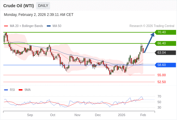 在 58.60 之上,看涨,目标价位为 66.40 ,然后为 70.40 。
