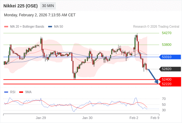在 53310 之下,看跌,目标价位为 52400 ,然后为 52220 。