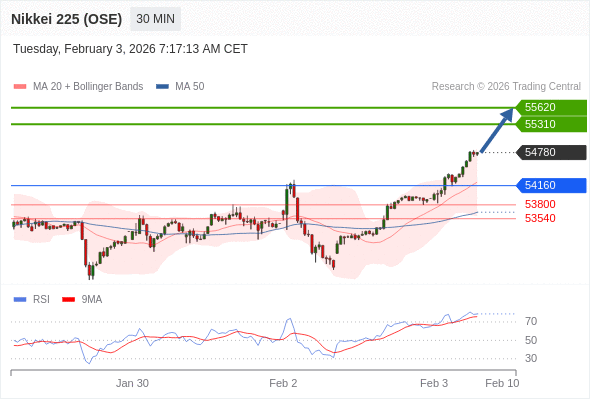 日经225股指期货 (OSE) 当日内: 目标位为55620。
