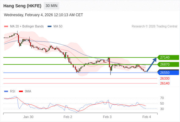 在 26550 之上,看涨,目标价位为 26870 ,然后为 27140 。