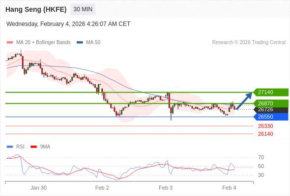 在 26550 之上,看涨,目标价位为 26870 ,然后为 27140 。