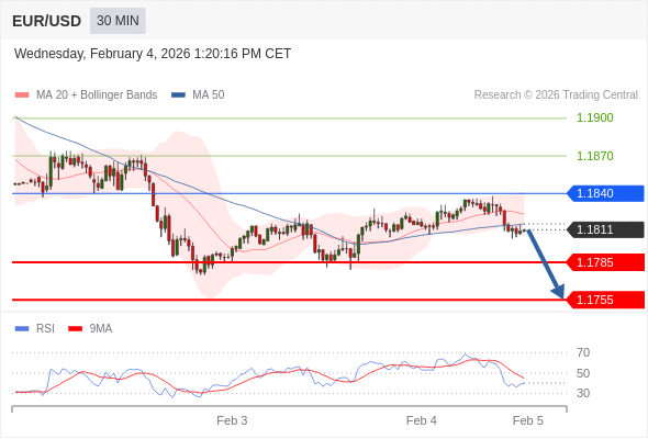 交易策略: 在 1.1840 之下,看跌,目标价位为 1.1785 ,然后为 1.1755 。
