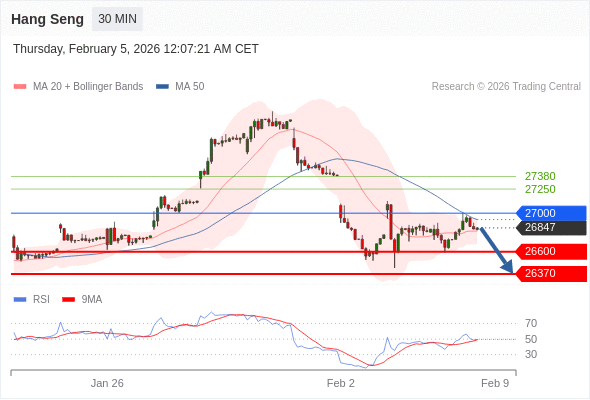 在 27000 之下,看跌,目标价位为 26600 ,然后为 26370 。