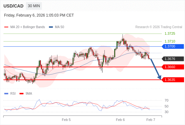 在 1.3700 之下,看跌,目标价位为 1.3660 ,然后为 1.3635 。