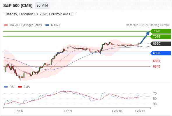 在 6930 之上,看涨,目标价位为 7035 ,然后为 7070 。