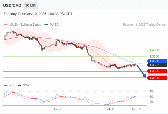 在 1.3580 之下,看跌,目标价位为 1.3535 ,然后为 1.3505 。