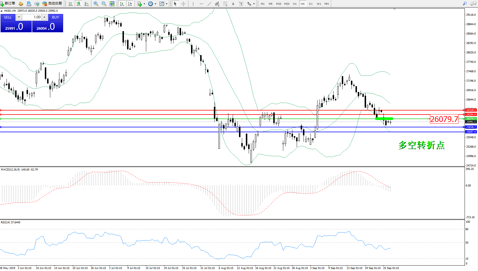 恒指HK50 ——4小时K线图显示: