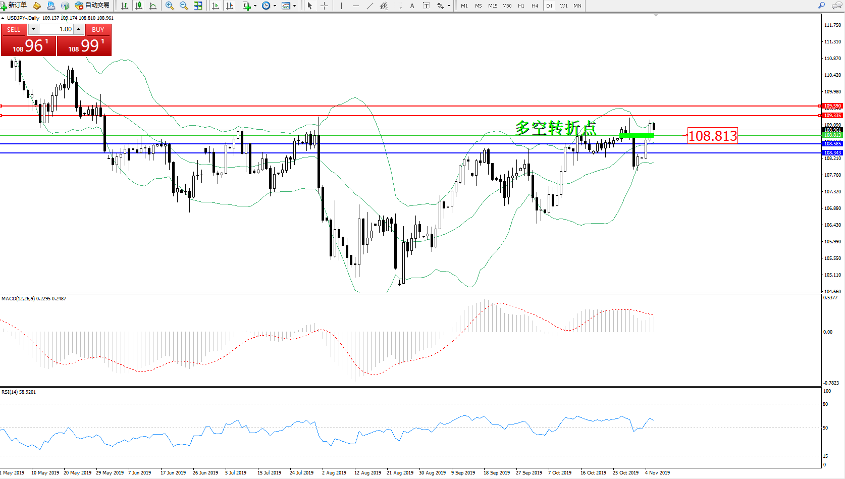 交易策略:108.813上方看涨,目标109.335109.590