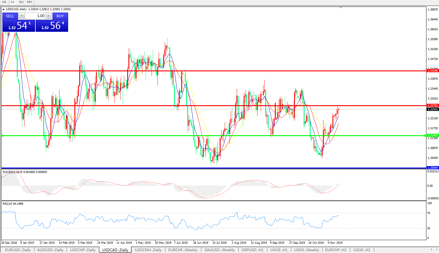 美元兑加元USDCAD    日线图: