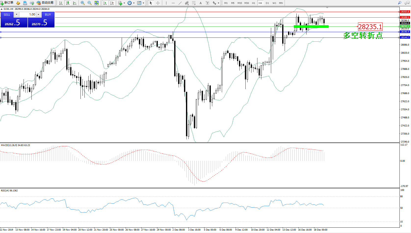道琼斯指数DJ30—— 4小时K线图显示: