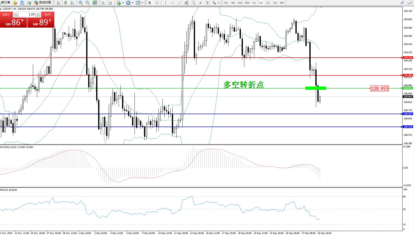 交易策略:108.955下方看跌,目标109.088109.269