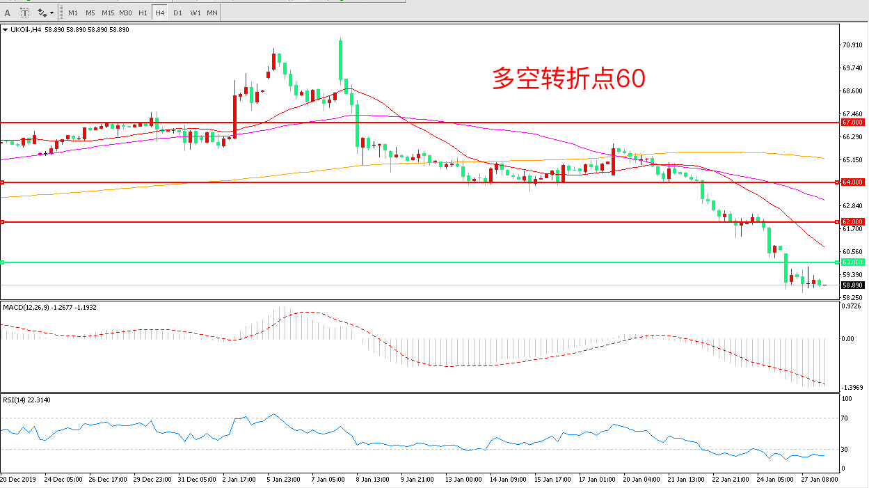 交易策略:在60.00之下看跌,目标57.00    55.00