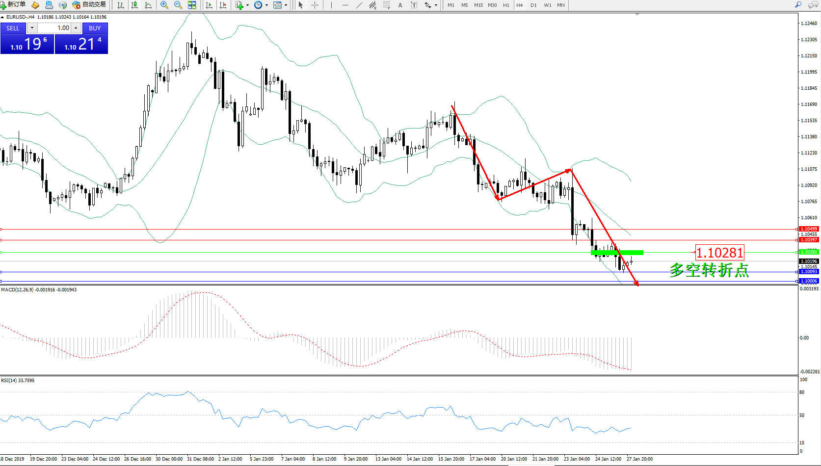 交易策略:1.10281下方看跌,目标1.100931.10006