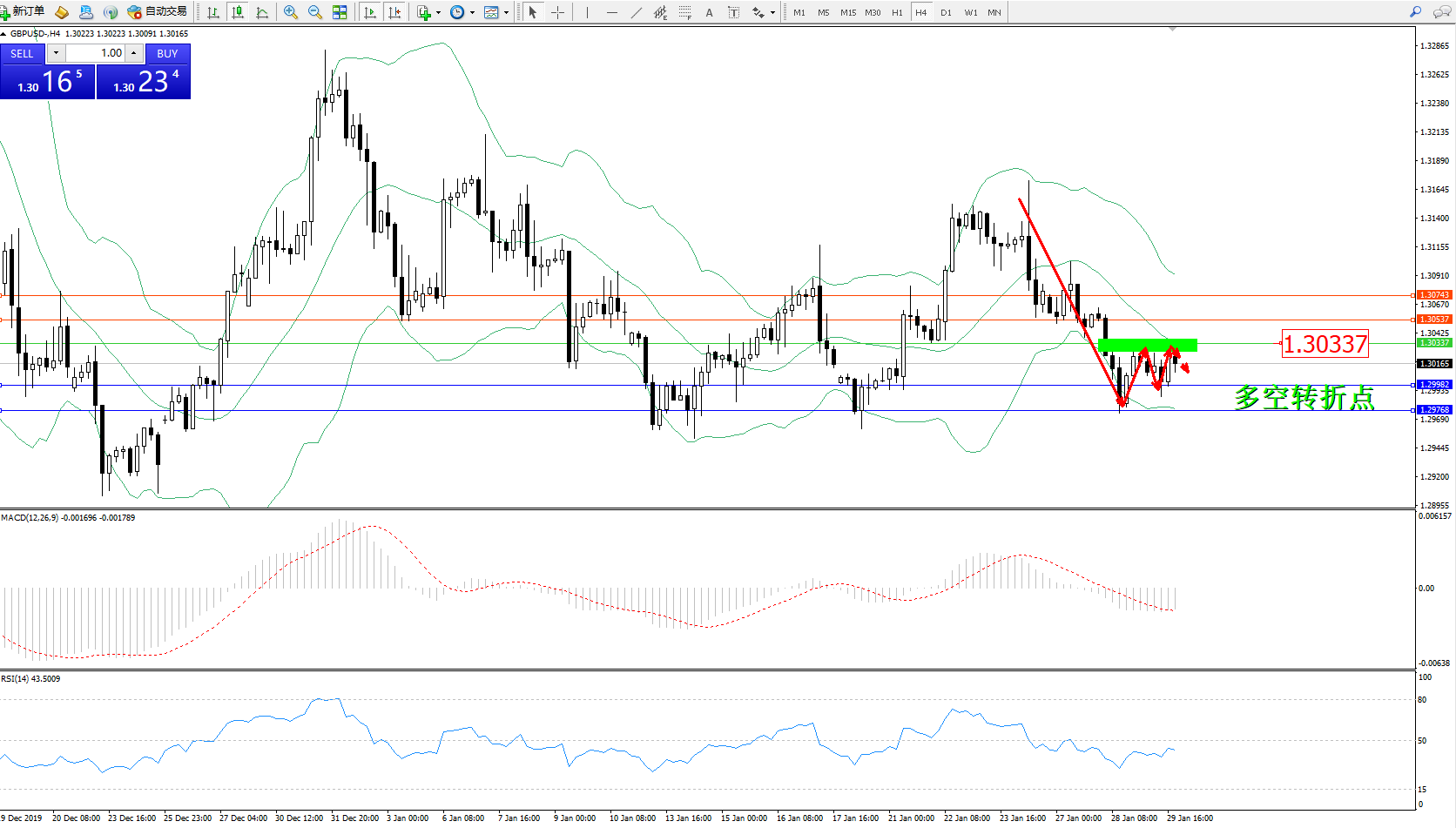 交易策略:1.30337下方看跌,目标1.299821.29768