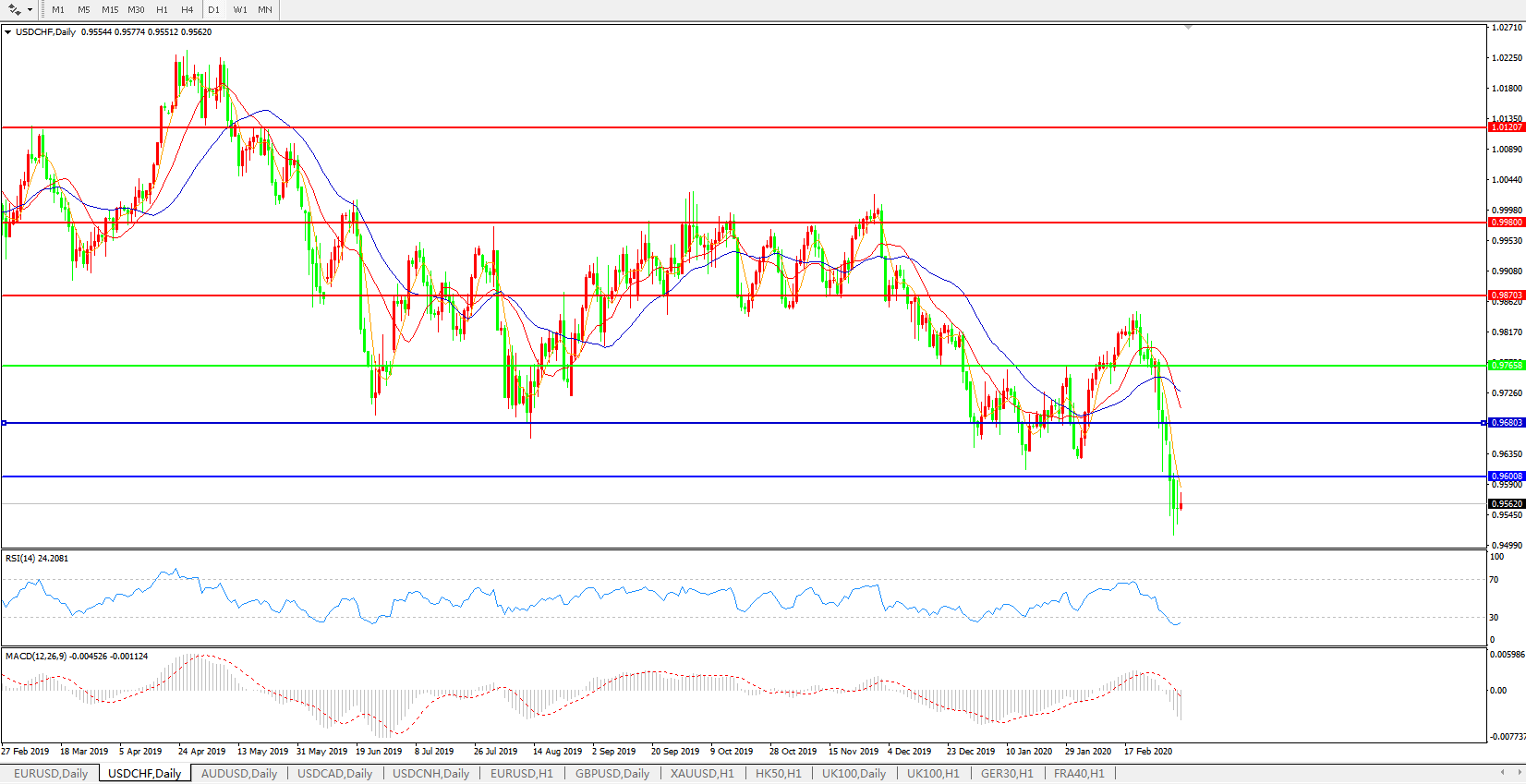 支撑位:0.9600 0.9500