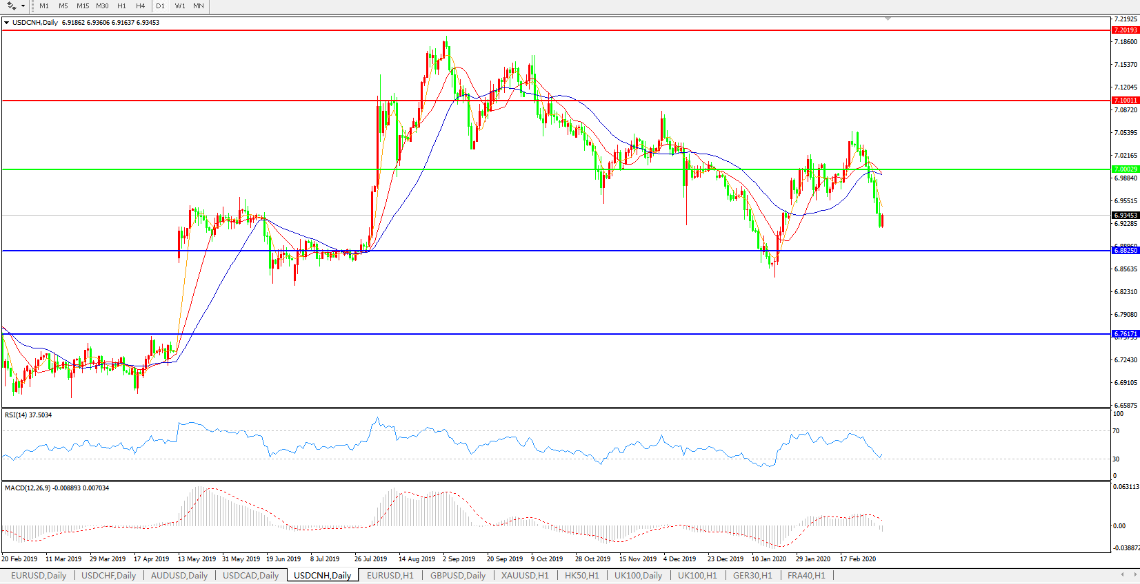 交易策略: 在7.0000之下,看跌,目标价位为6.8820,然后为6.7600。