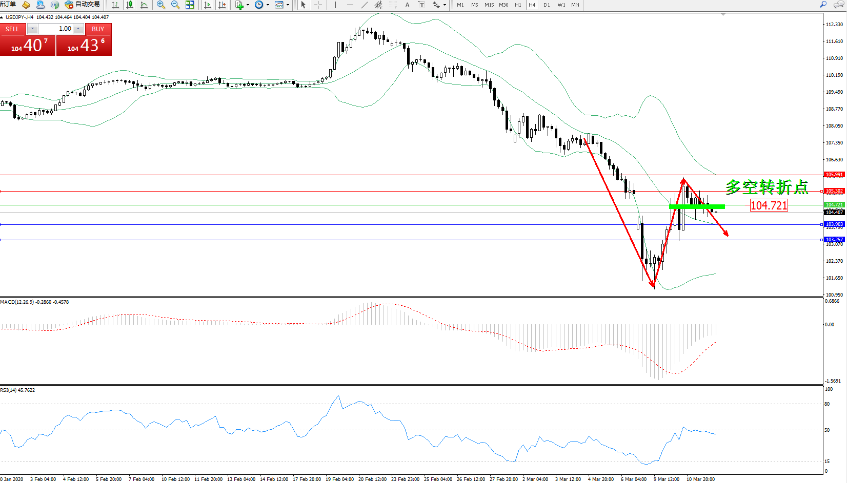 美元兑日元跌1.04%104.54;日内风险偏好情绪回落,与股市大跌走势一致,因对公共卫生事件扩散的担忧推动投资者纷纷转向避险资产;美指下跌同时美债收益率也大幅下跌,日元受益于避险需求的上升,但在投资者在欧市开盘英国央行紧急降息后对全球宽松预期重燃信心后,避险日元即再度遭到抛售,但整体上避险需求依旧支撑着日元。