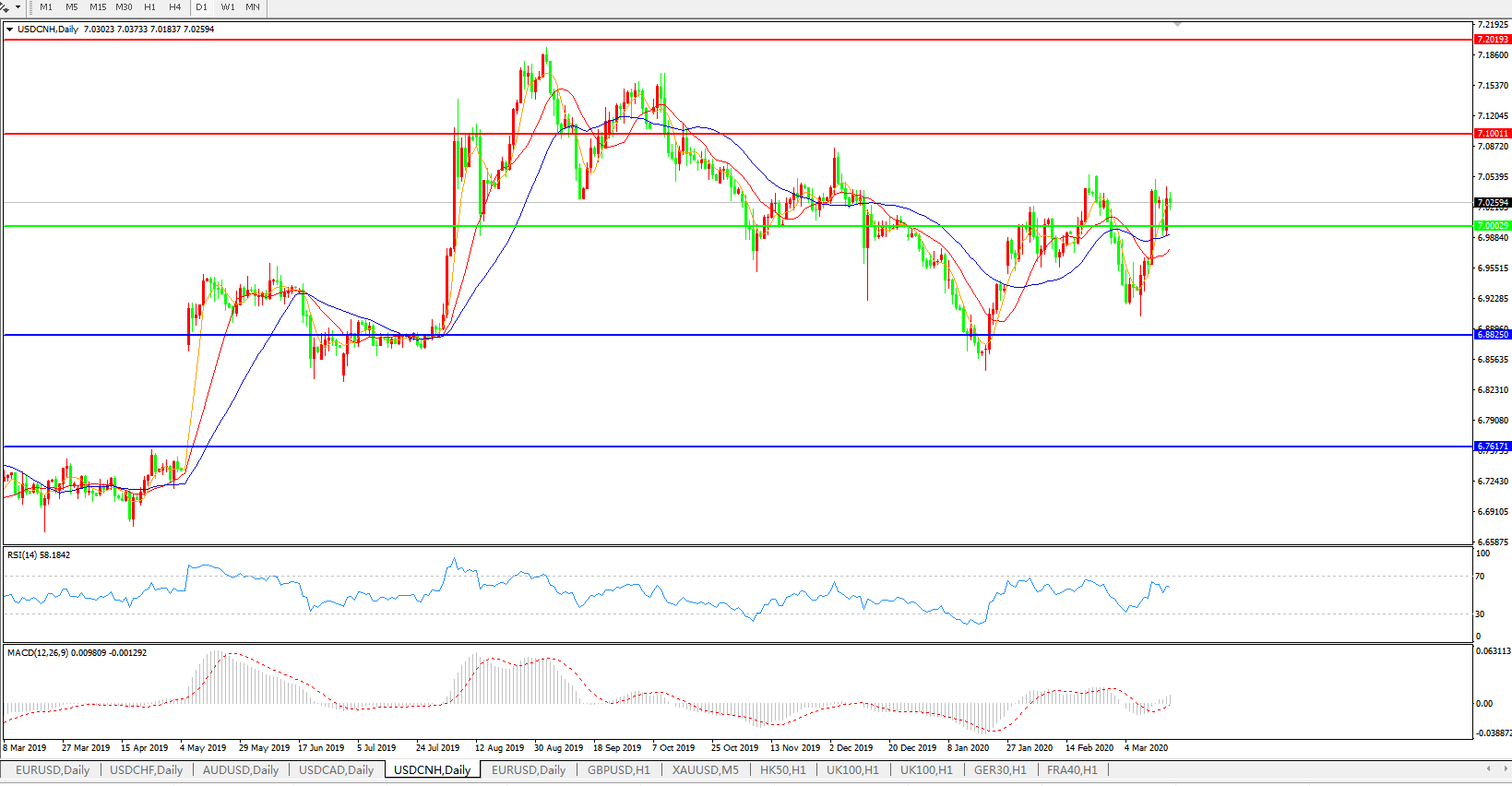 交易策略: 在7.0000之上,看涨,目标价位为7.1000,然后为7.2000。