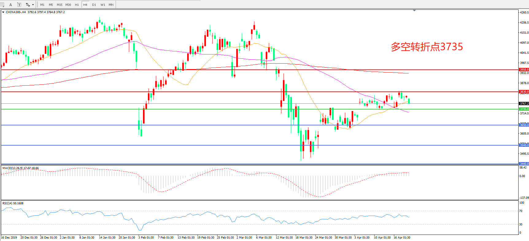 沪深300  CHINA 300   4小时图