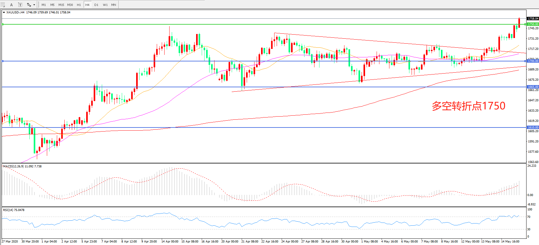 多空转折点:1750.00