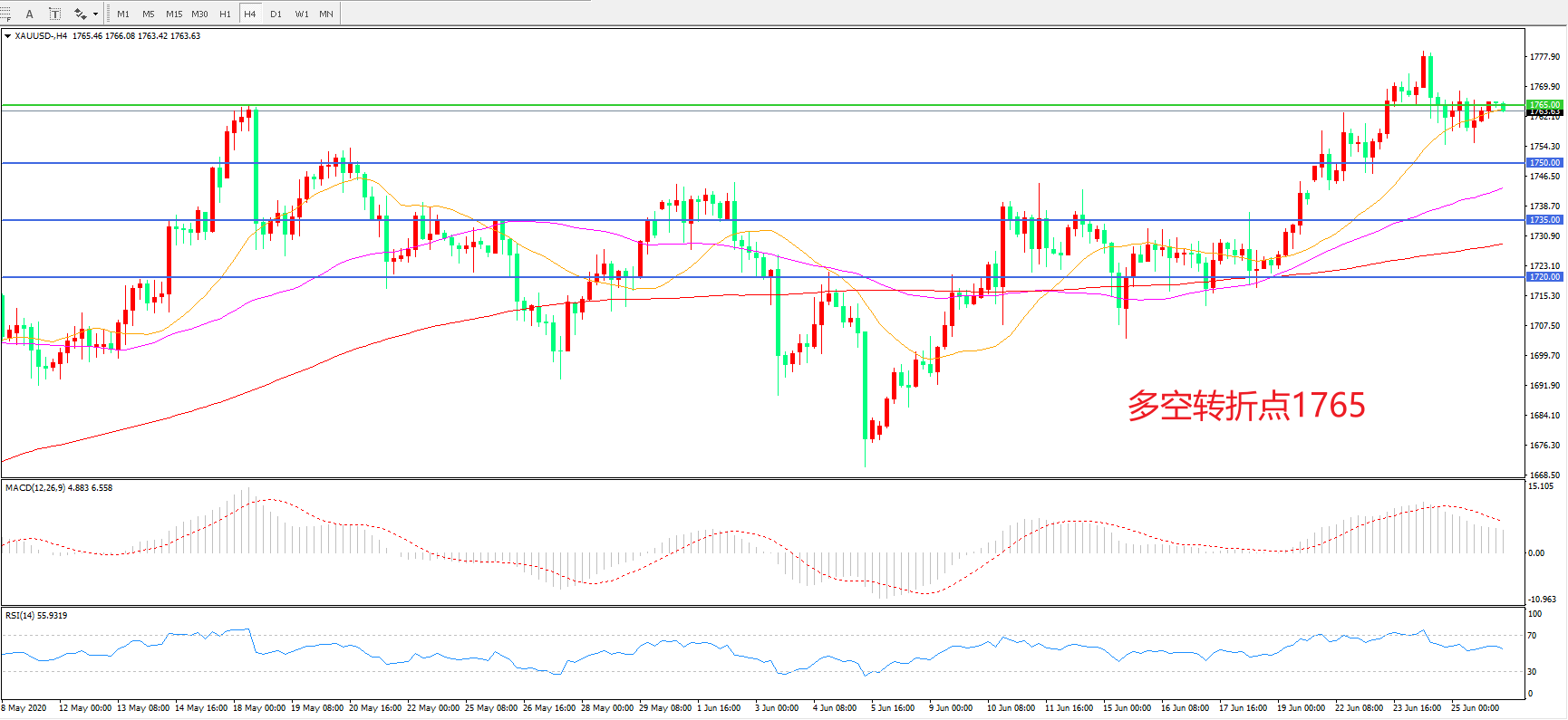 交易策略:在1765.00之上看涨,目标1780.00   1800.00