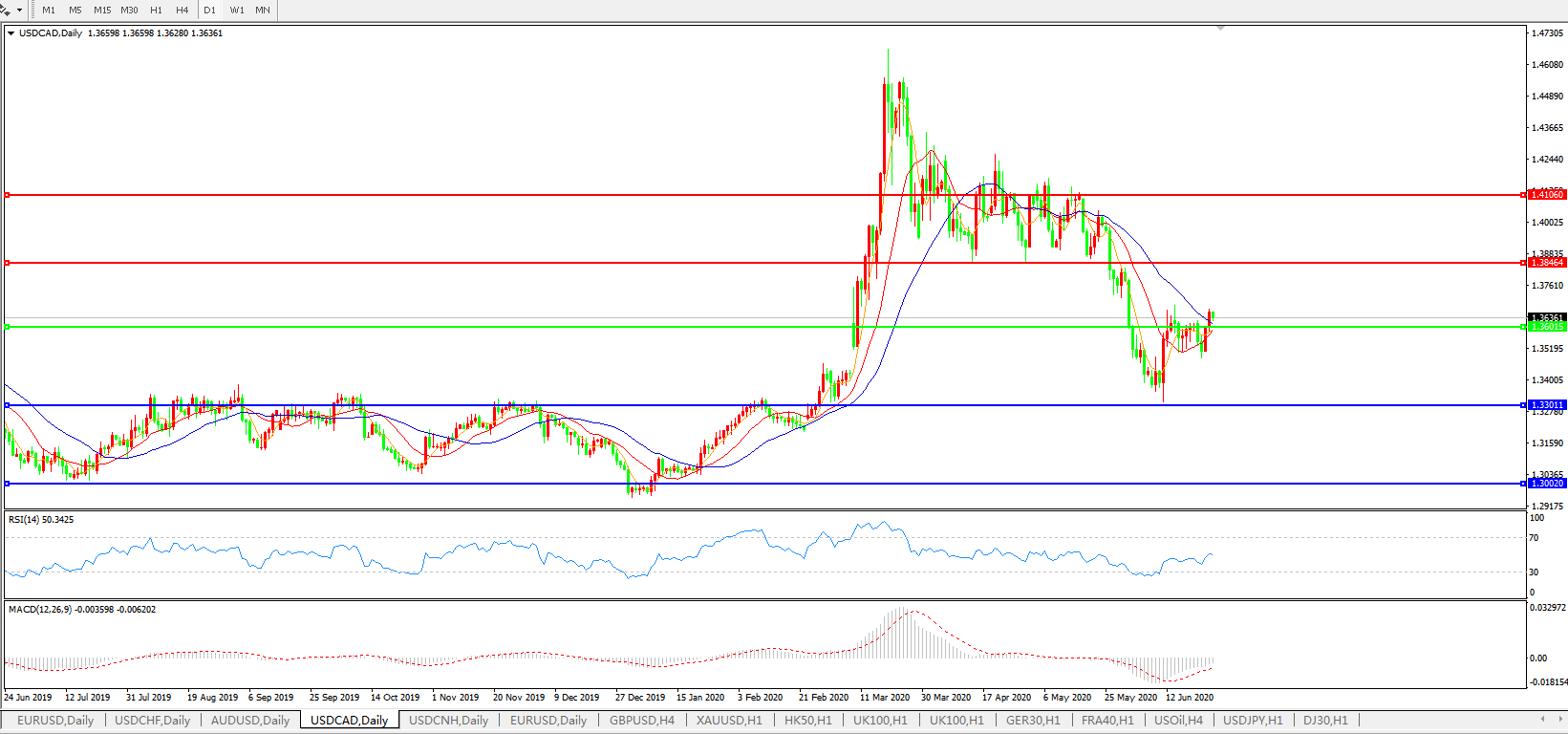 美元兑加元USDCAD    日线图: