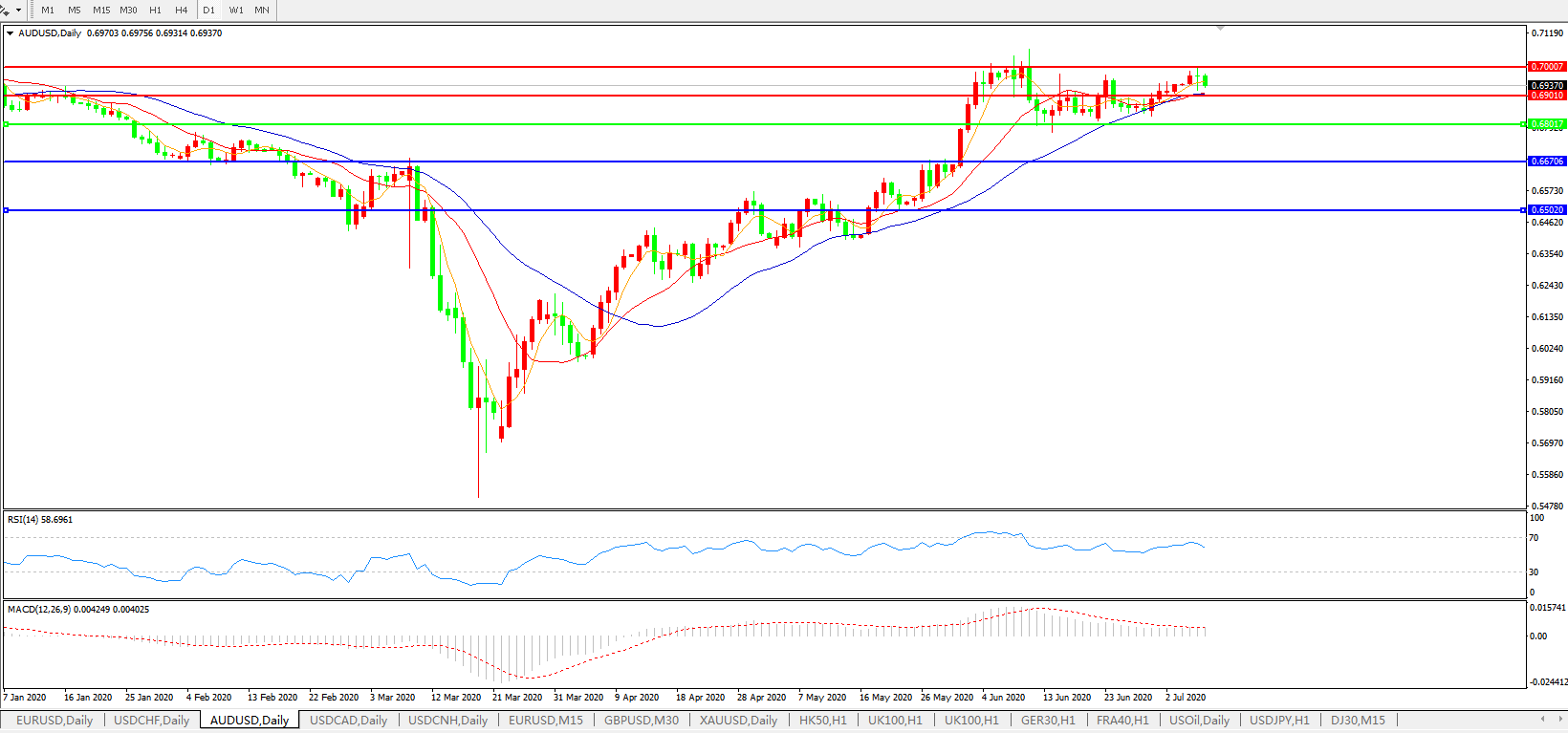 压制位:0.6900 0.7000