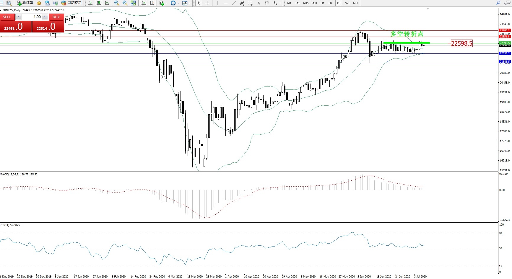 日经225指数78日(周三)收盘下跌169.19点,跌幅0.75%,报22445.50点。美国新冠疫情重燃以及部分国家重新实施封锁,投资者对新冠疫情立场愈发谨慎;美联储对经济的评论听起来有些暗淡。目前有理由为之担心,因为还难以判断疫情何时可控。日本京都府7日表示,当地新增9名新冠肺炎确诊病例。京都市政府认为,市内已新增一起因聚会而引发的集体感染情况,正在紧急调查详情。综合日本关西电视台、京都新闻7日消息,新增的9名确诊患者中有5名男性,都曾去过630日京都市内一家餐饮店里办的聚会,开怀畅饮。这5人年龄在20-30岁,关系为同事、朋友等。另有一名参加聚会的20多岁男性于6日被确诊感染新冠病毒。这场聚会共8人参加,目前已有6人确诊。京都市政府认为,聚会已引发新的集体感染。