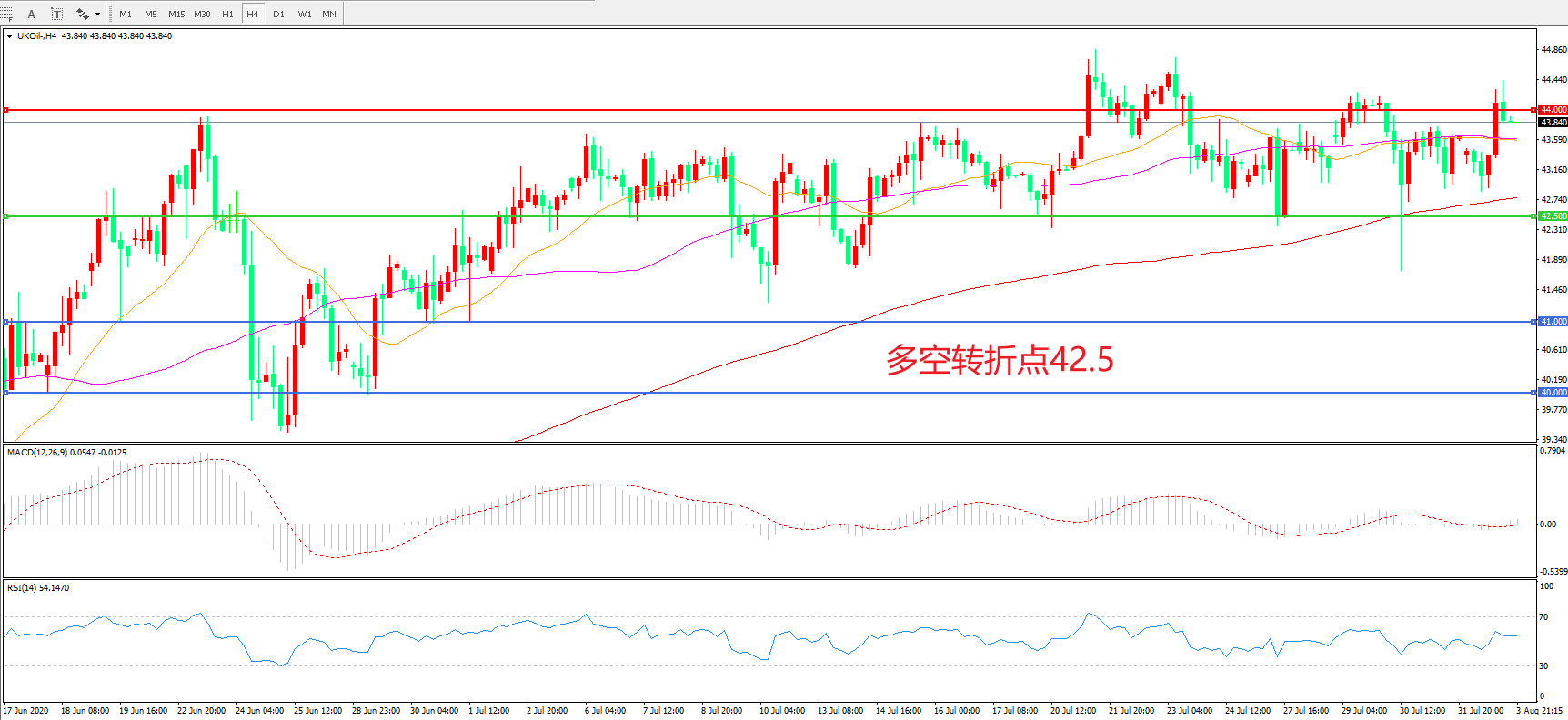交易策略: 在42.50之上看涨,目标44.00 46.00