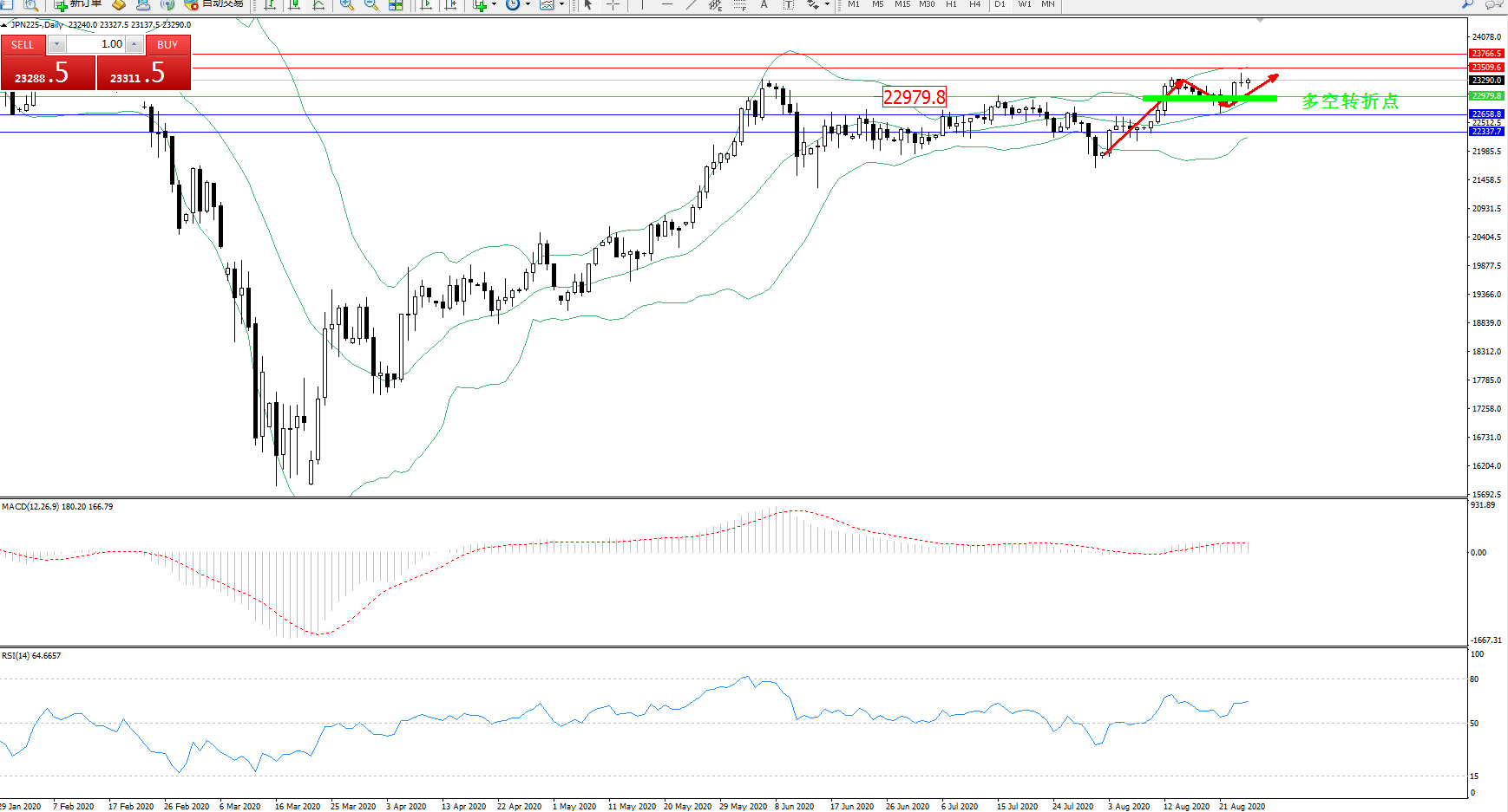 日经225指数8月26日(周三)收盘下跌20.27点,跌幅0.09%,报23276.50点。路透周二报道称,甘利明接受采访表示,首相安倍晋三作为自民党总裁可能任满任期。甘利明表示,“我认为安倍会任满他的任期”,并称安倍的状态比上次在8月中旬碰面时更好 安倍晋三的任期到2021年9月结束,领导自民党税收委员会的甘利明表示,安倍晋三可能下月重组自民党和内阁人事。日本多名政府干部透露,日本首相安倍晋三计划在28日举行记者会,或将就近期外界对其身体状况的担忧进行说明。据报道,若记者会如期举行,预计安倍将会主要就其新冠对策进行介绍,此外,他或将就近期外界对其身体状况的担忧,主动作出说明。