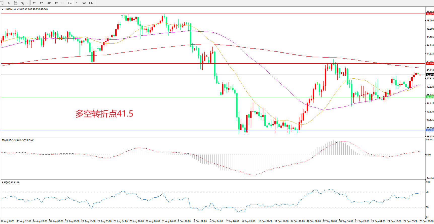 交易策略:   在41.50之上看涨,目标43.50      46.50