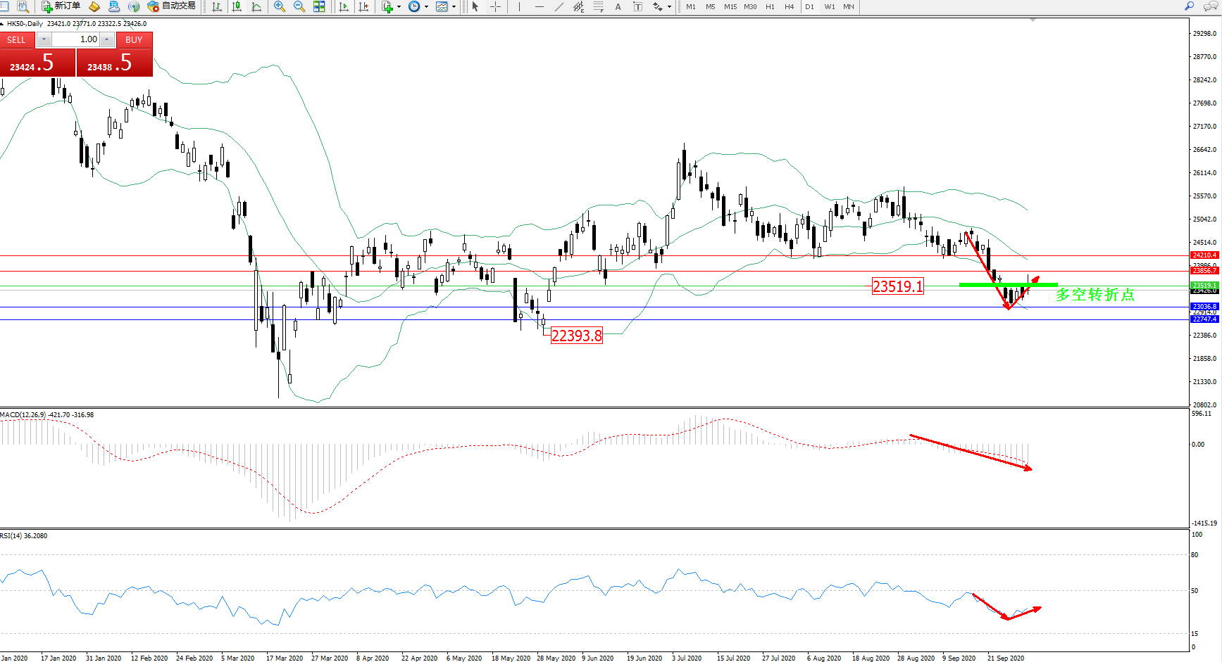 恒指HK50 ——日K线图显示: