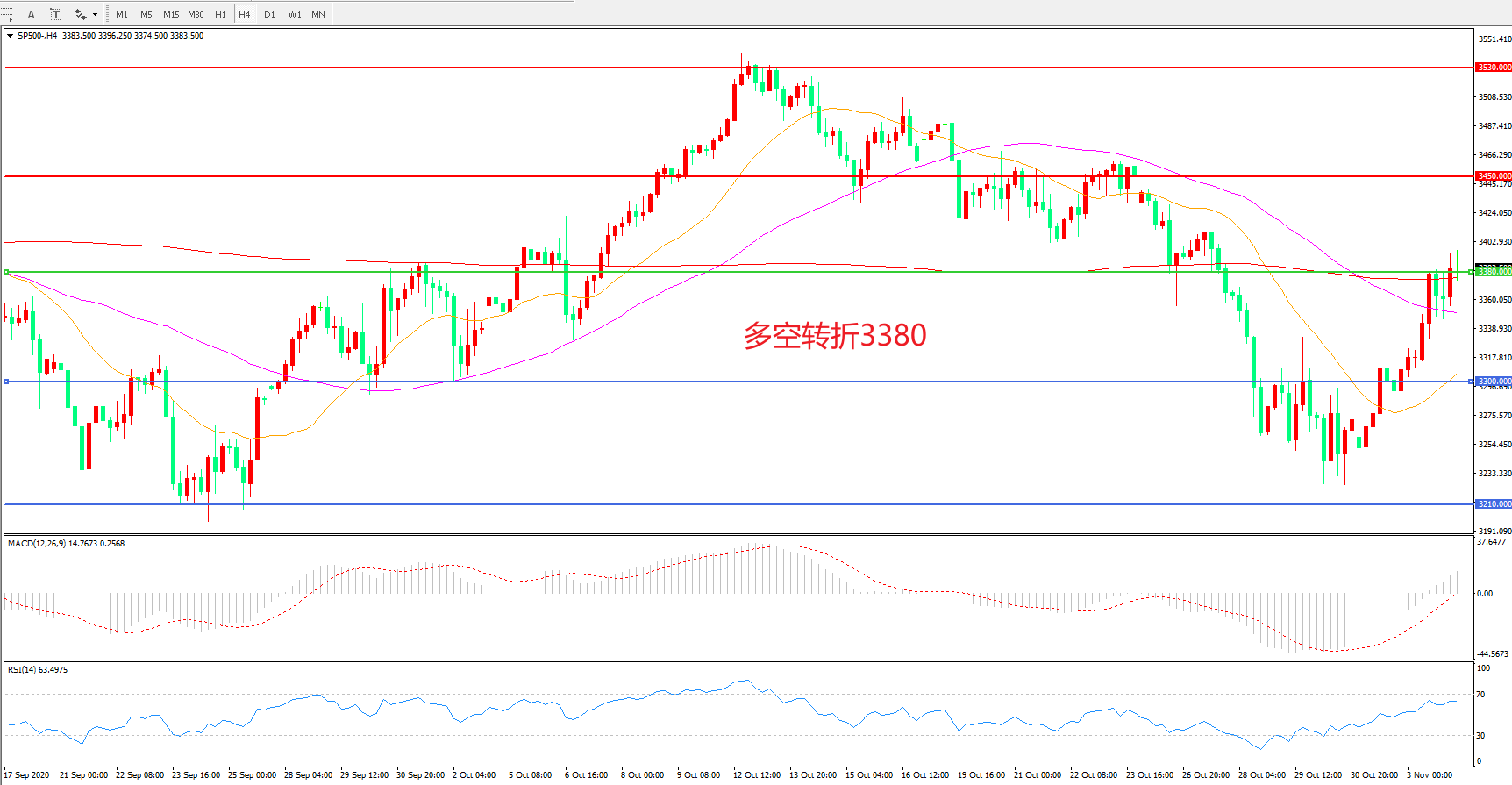 多空转折点:3380.00