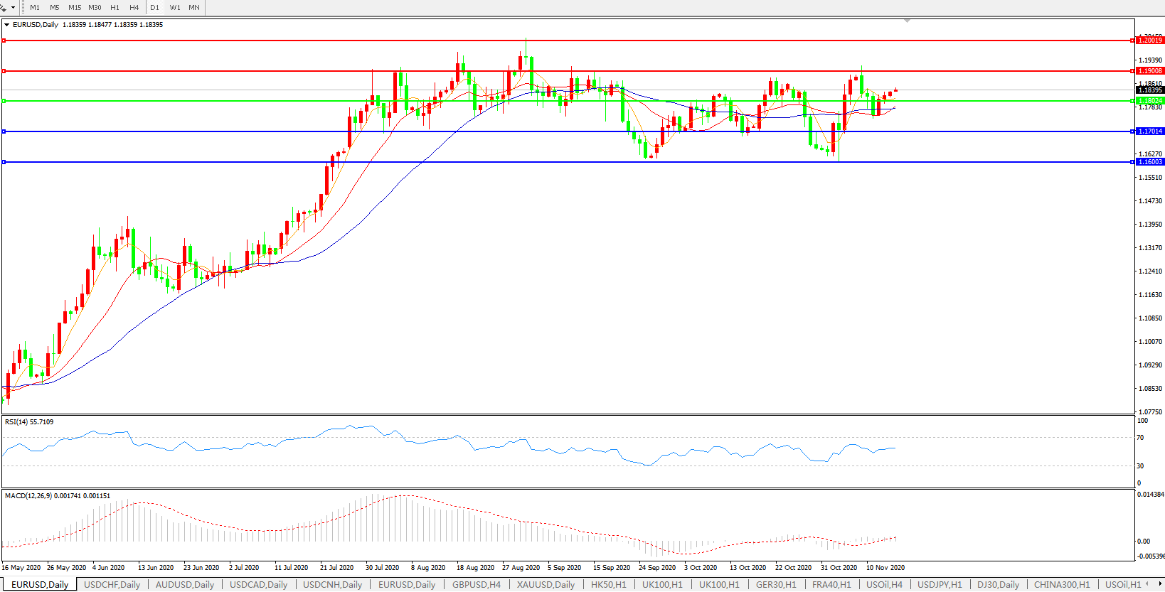 欧元兑美元EURUSD   日线图: