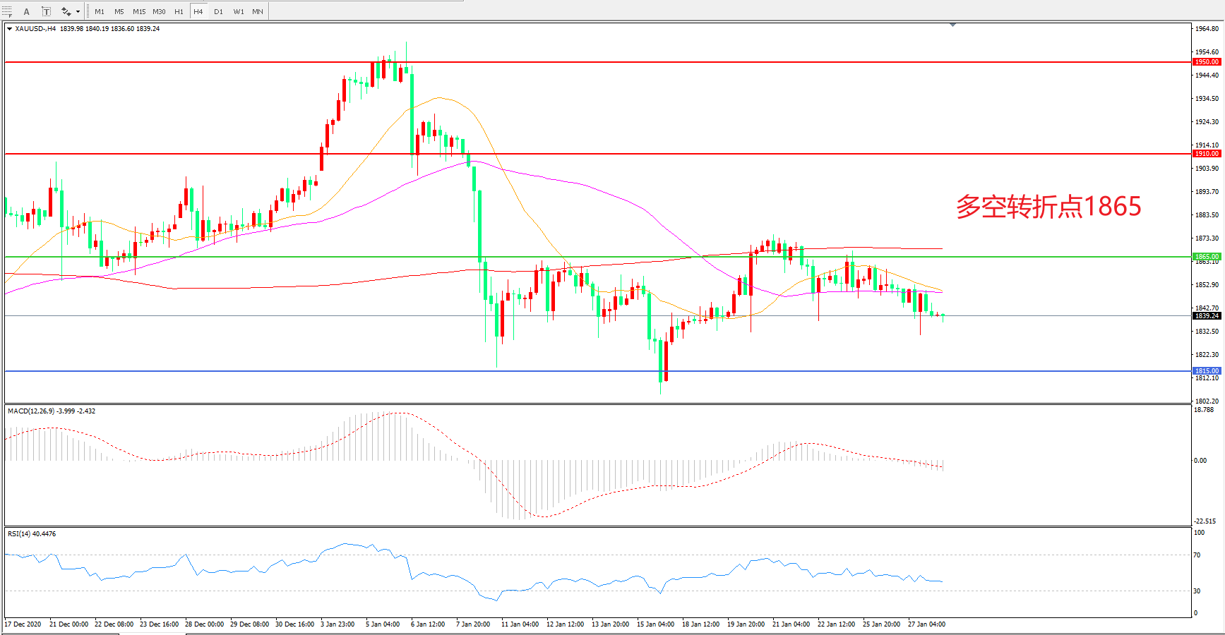 交易策略:在1865.00之下看跌,目标1815.00    1765.00