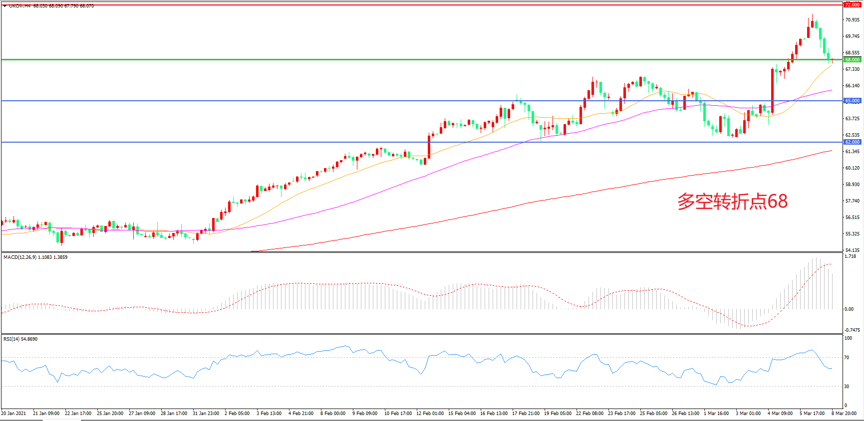 多空转折点:68.00