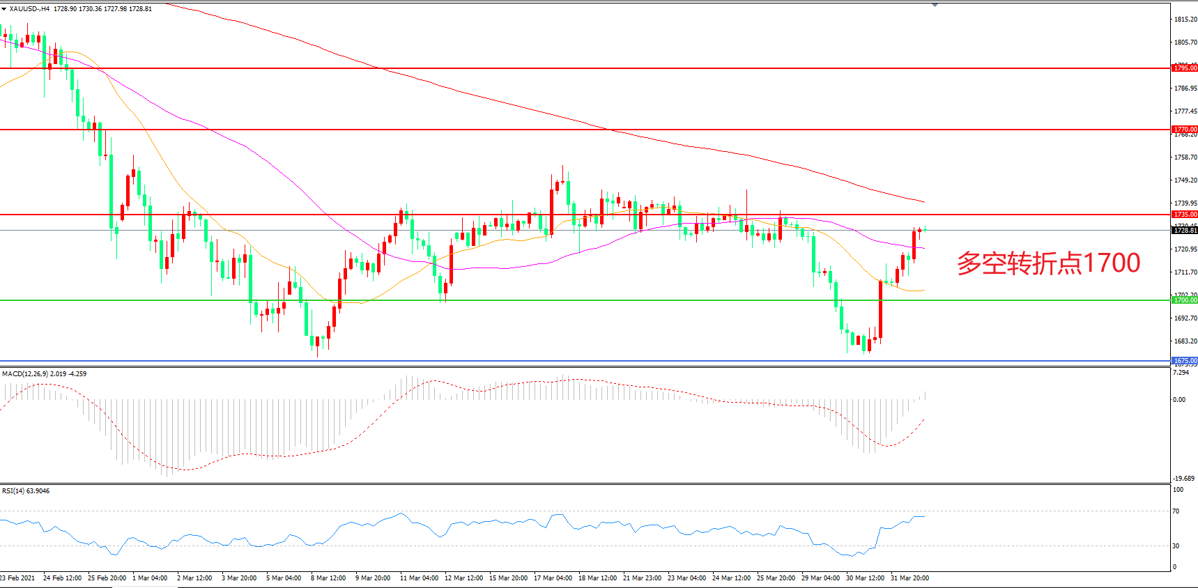 交易策略:在1700.00之上看涨,目标1735.00 1770.00